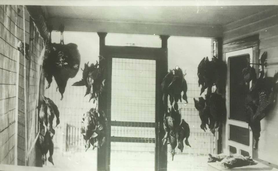 Screened porch at the Little House after the hunt, photo by De Ward Ritchie, Sr.